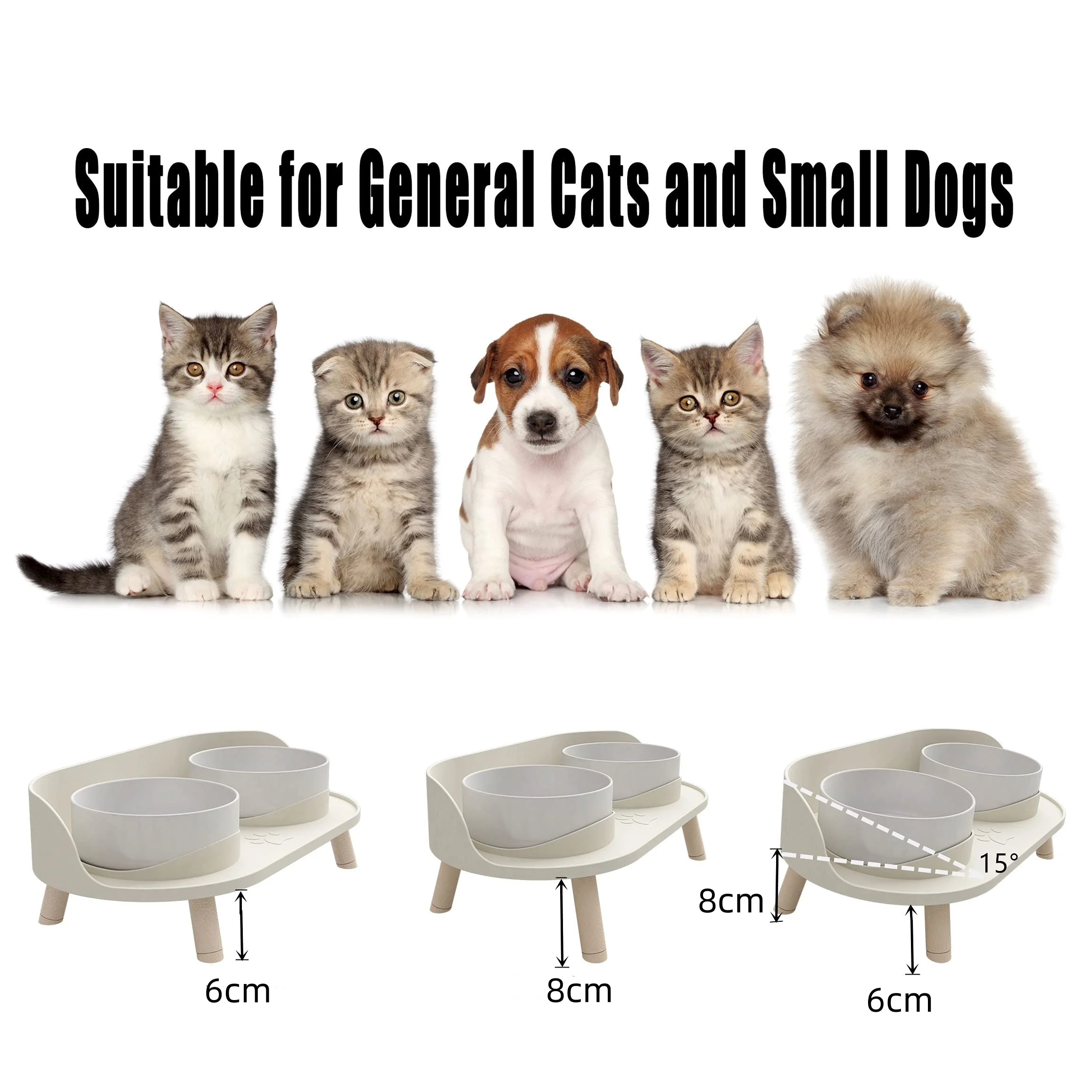 3 Adjustable Heights Cat Food Bowls Dog Cat Bowls Stand with No-Spill Design Anti Vomiting Cat Water Bowl for Dog Cats