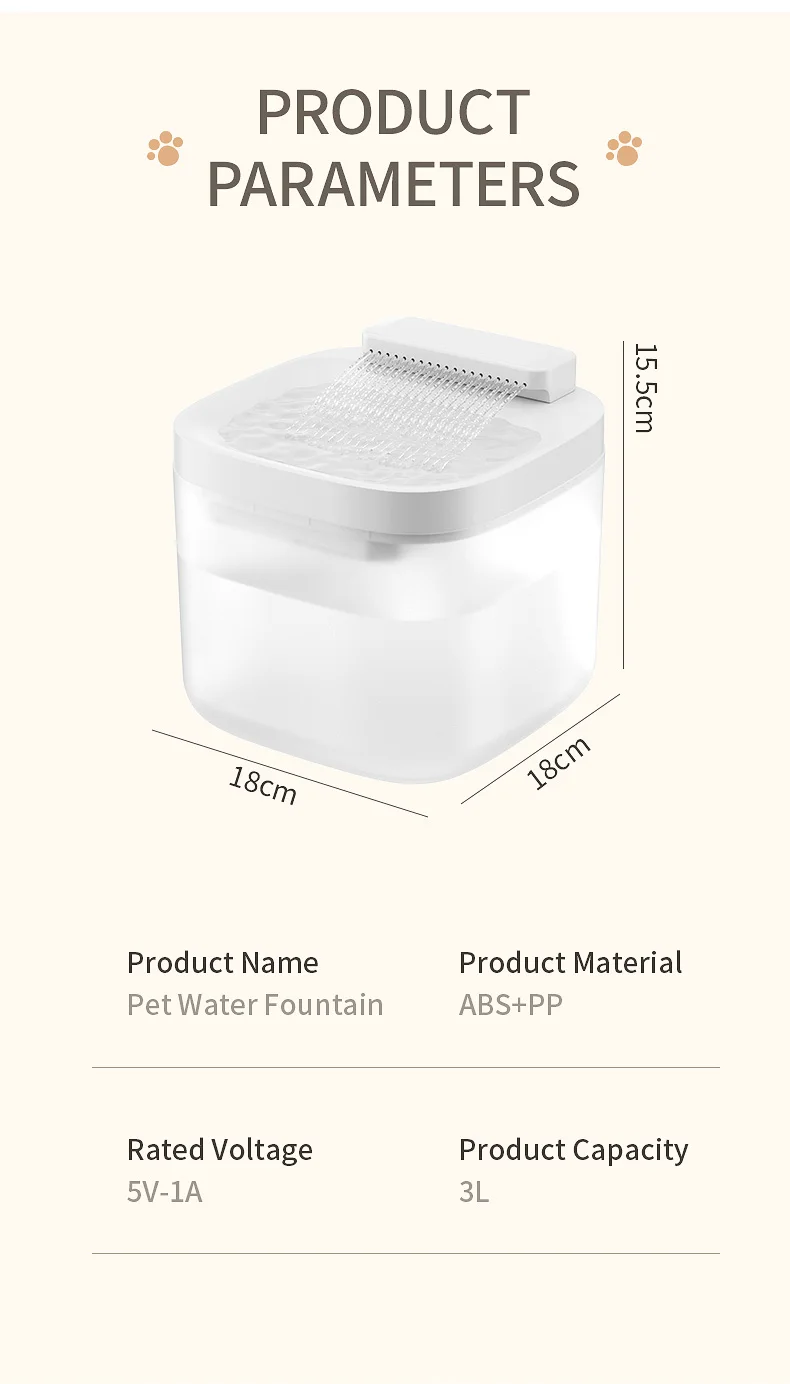 3L/101.45oz Automatic Cat Water Fountain Large Capacity