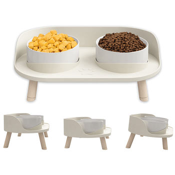 3 Adjustable Heights Cat Food Bowls with No-Spill Design