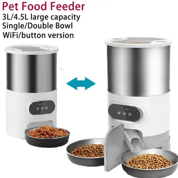 3L/4.5L Automatic Smart Cat Food Feeder, Single/Dual Stainless Steel Bowls, Timed Feeding For Dry Foods